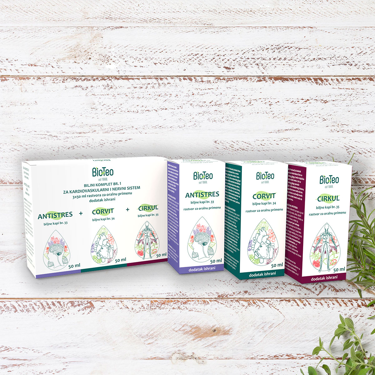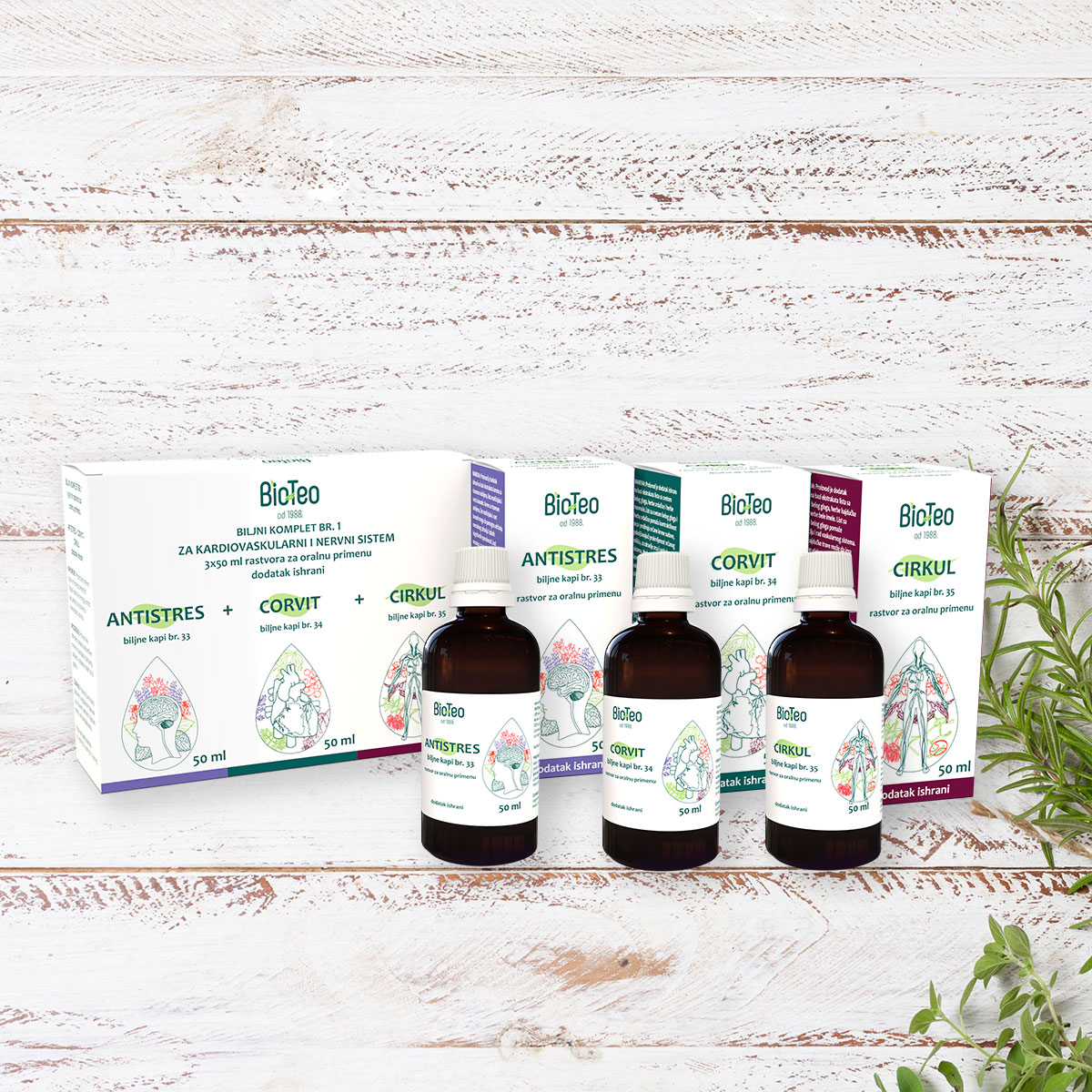 Biljni komplet br. 1 Antistres+Corvit+Cirkul za kardiovaskularni i nervni sistem – 3x50ml
