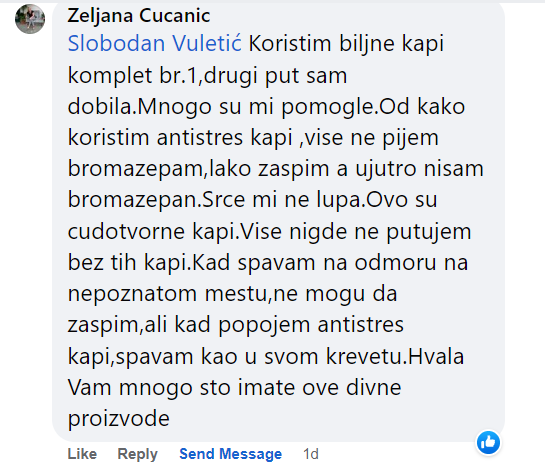 Sastojci: vodeno-etanolni ekstrakti korijena sa rizomom odoljena, lista matičnjaka i cvijeta lavande.