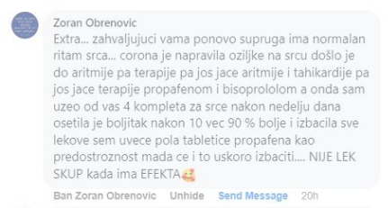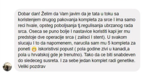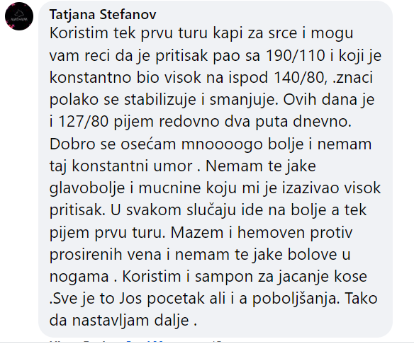 Sastojci: vodeno-etanolni ekstrakti lista sa cvijetom bijelog gloga, herbe hajdučke trave i herbe bijele imele.