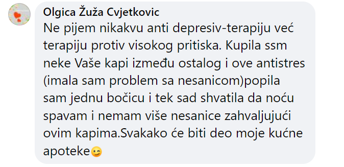 ANTISTRES je dodatak ishrani na bazi ekstrakata korijena sa rizomom odoljena, lista matičnjaka i cvijeta lavande. Korijen sa rizomom odoljena, list matičnjaka i cvijet lavande mogu da pomognu održanju mentalnog zdravlja i dobrih kognitivnih sposobnosti, kod nesanice, za opuštanje.