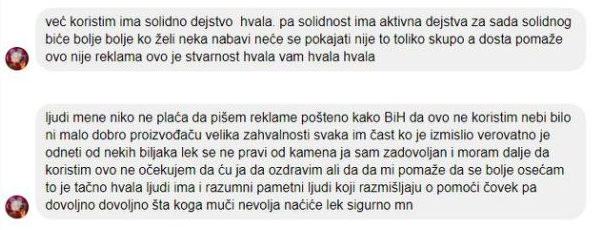 Preporučuje se konzumiranje barem dvije bočice svakog proizvoda iz kompleta u kontinuitetu, uz primjenu pravilnog higijensko-dijetetskog režima i poštovanje propisane redovne terapije od strane ljekara.