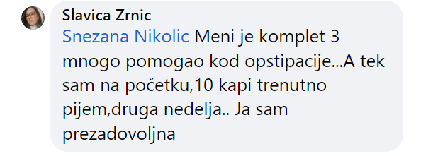 Proizvod je dodatak ishrani u vidu kompleta sastavljenog od 2 proizvoda na bazi biljnih ekstrakata koji, upotrebljeni sa istim ciljem a na način kako je preporučeno, mogu da ostvare povoljan efekat na zdravlje organa za varenje.